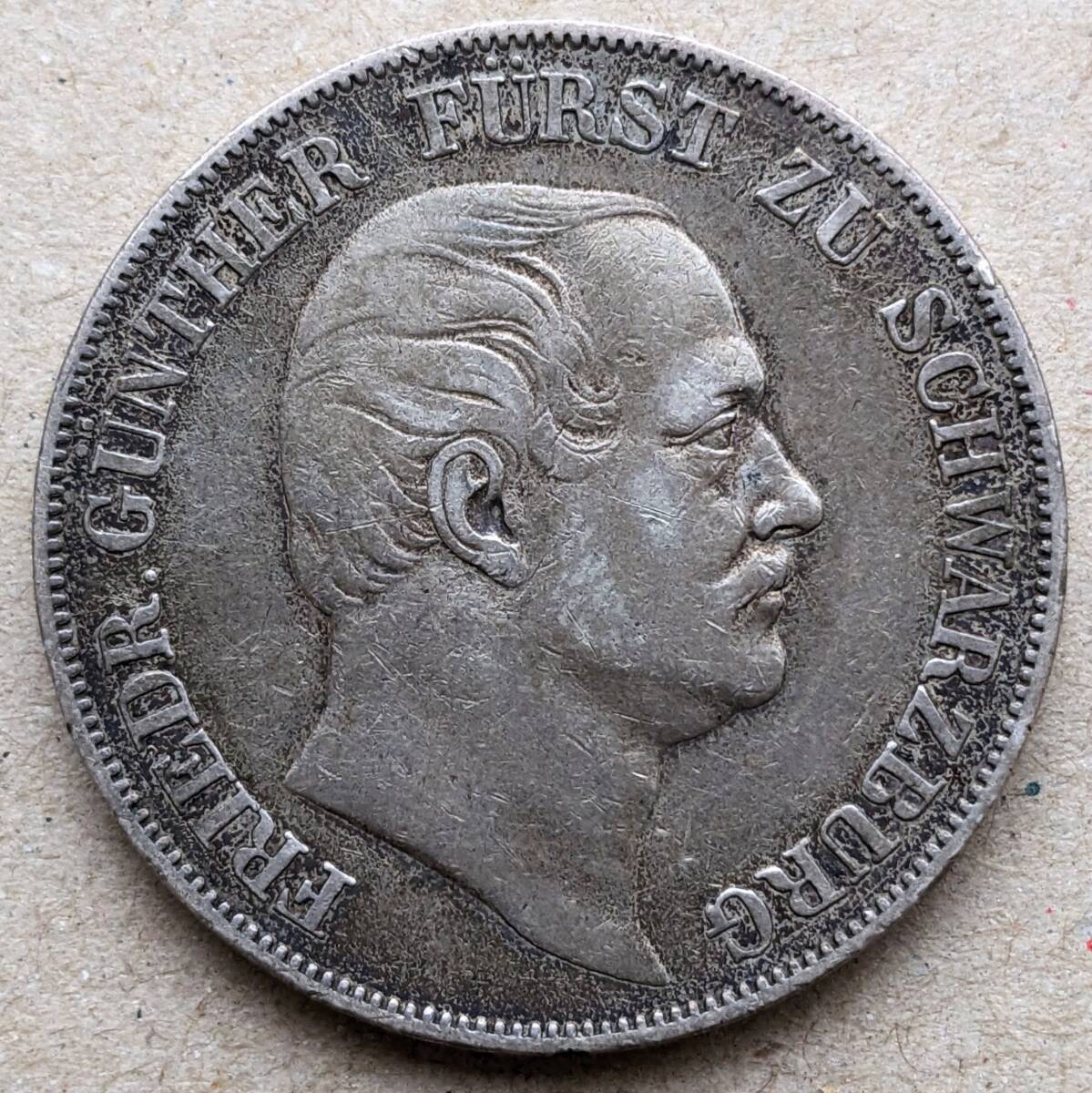 - 1862年 ドイツ シュワルツブルグ・ルドルシュタッド フリードリッヒ・ギュンター 1ターラー 銀貨 EF