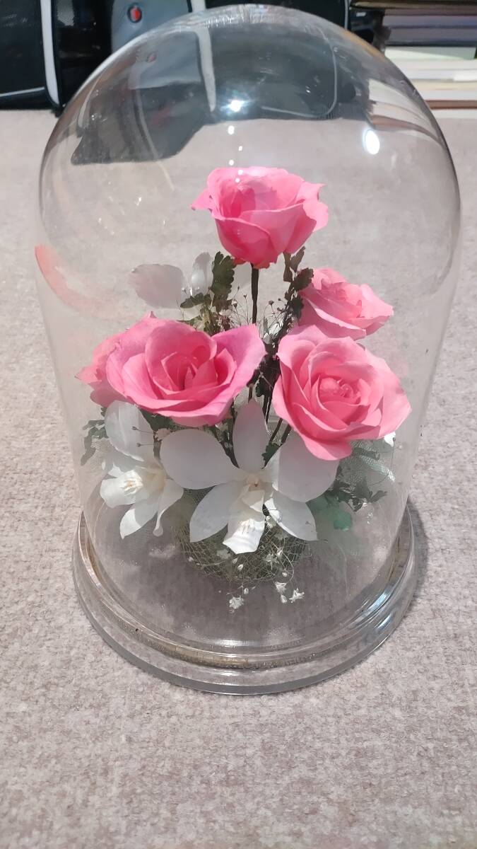 - 【プリザーブドフラワー ガラスドーム入り/ローズ×ホワイト系】