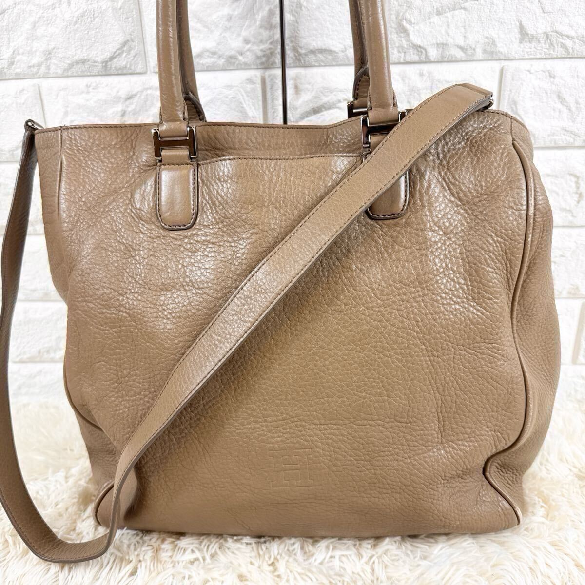 - HIROFU ヒロフ トートバッグ ショルダーバッグ 2WAY レザー 大容量 グレージュ系