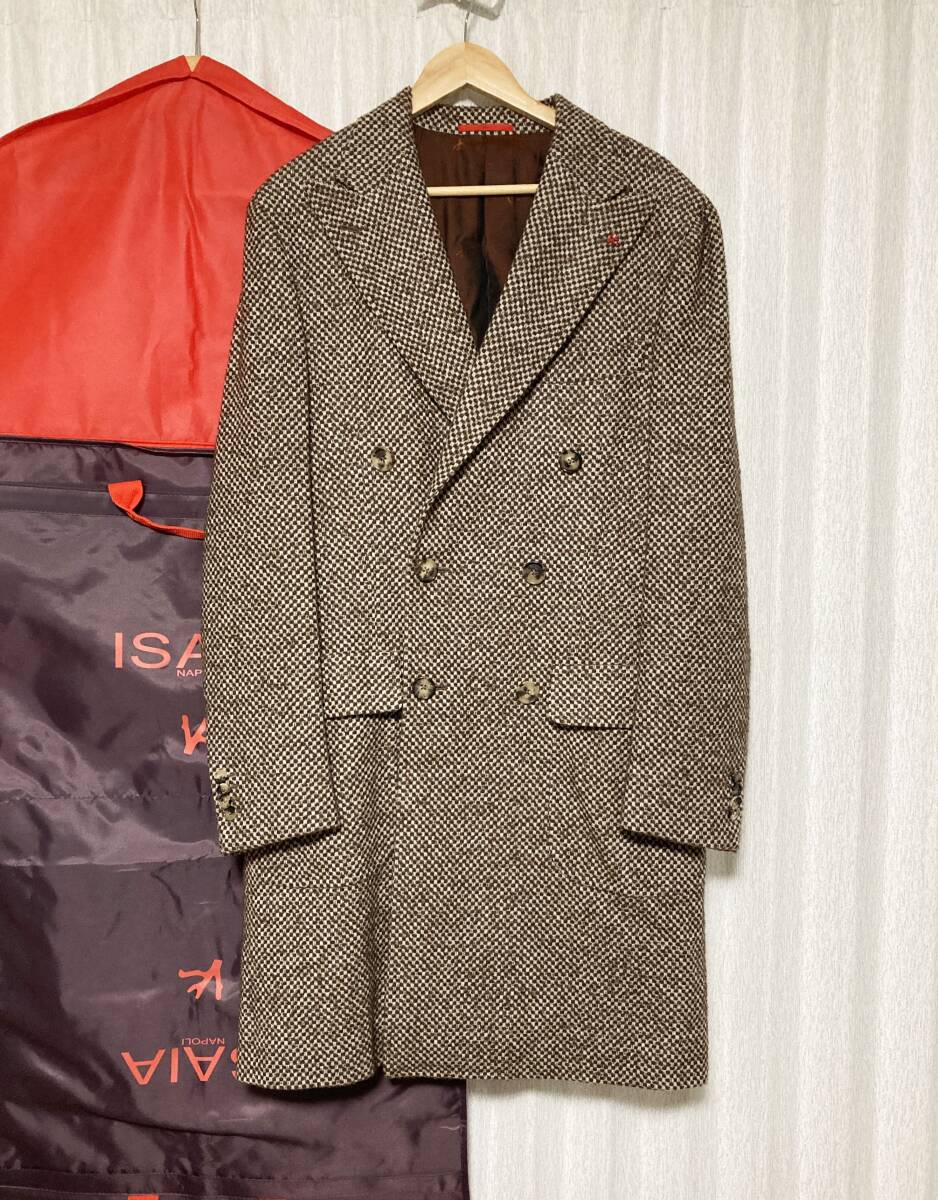 - 美品☆[ISAIA] アルパカ混 ピークドラペル ウールダブルチェスターコート 52R イタリア製 イザイア
