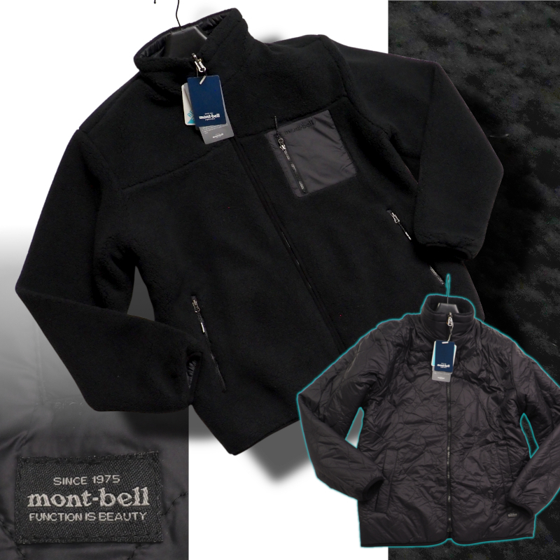 - 新品正規 mont-bell モンベル 海外限定 防風 Morganリバーシブル フリース/キルト ジャケット メンズ105(XL) ブラック(BLACK) WUJF262