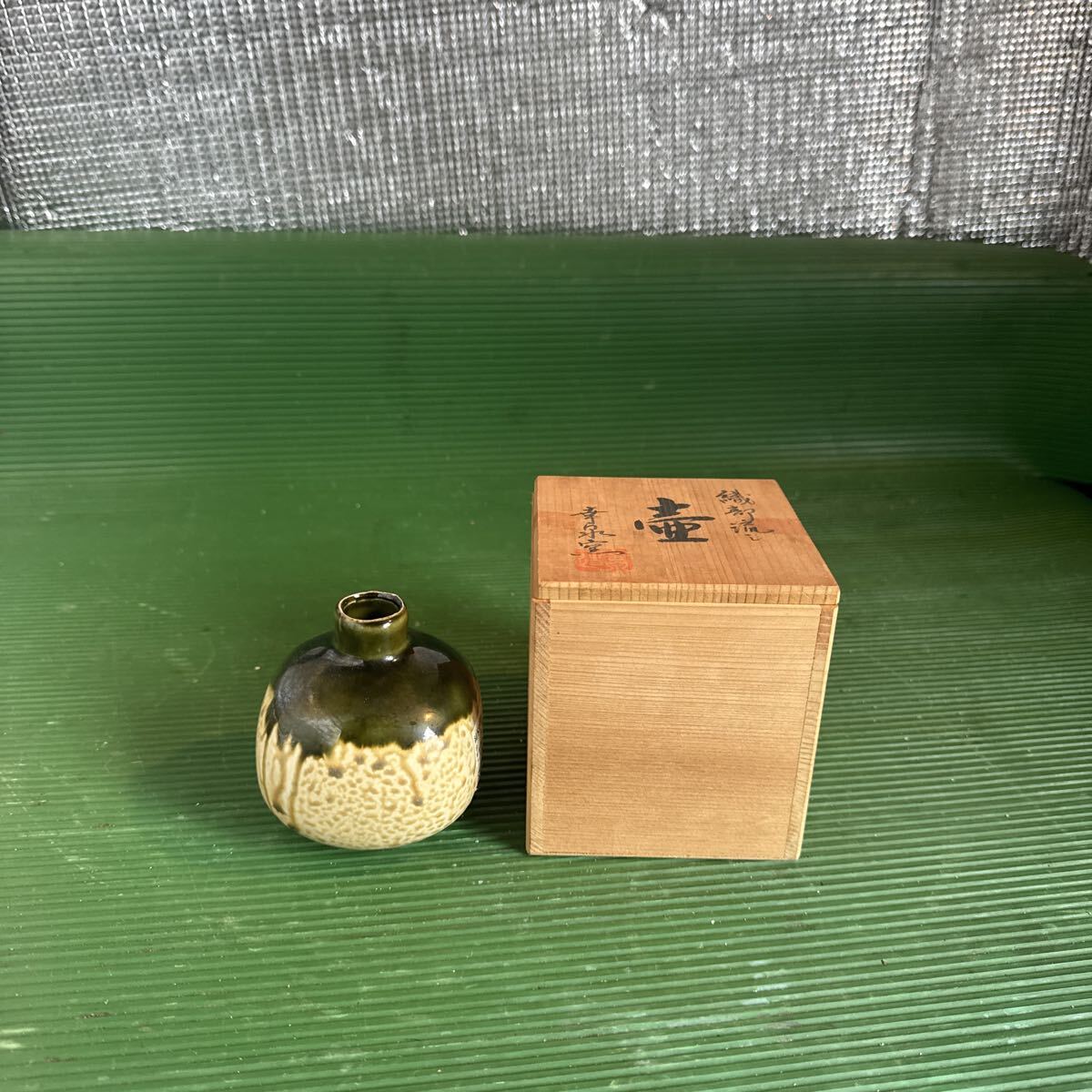 - 織部焼 隆 壺 大壺 花器 花入 丸型 和風 インテリア 昭和 レトロ 和風 木箱