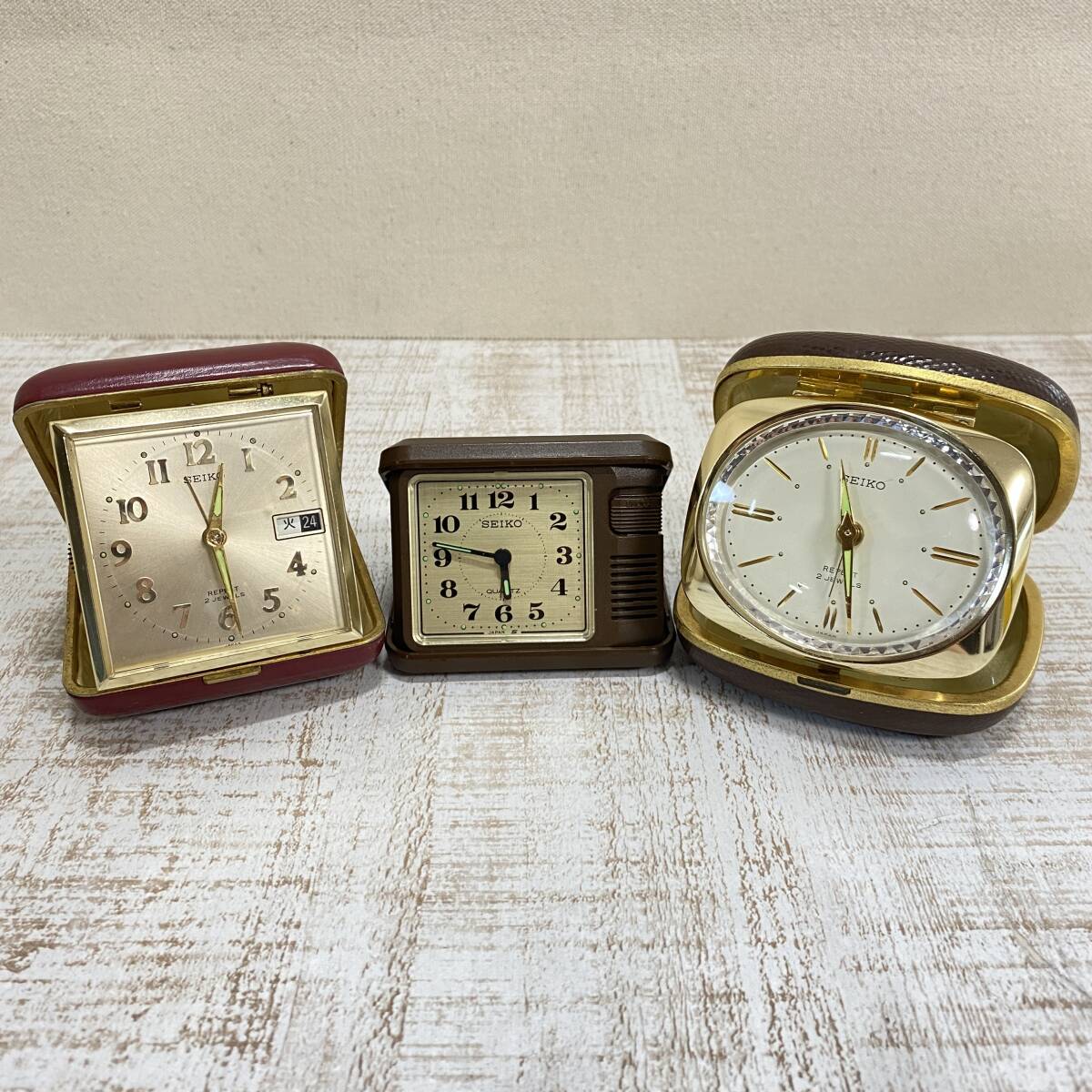 - CH07m【時計】3個セット SEIKO REPEAT 2JEWELS 折りたたみ 目覚まし時計 置時計 手巻き 電池 難あり
