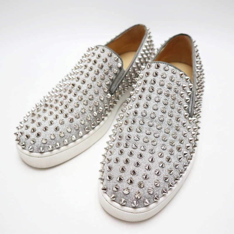 - Christian Louboutin クリスチャンルブタン スタッズ キャンバスラメ スリッポン スニーカー 41 シルバー K08-k059