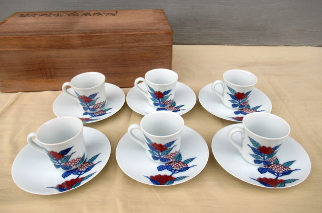 - 即決■今右衛門 錦藤袴絵珈琲碗 6客 共箱■カップ な-58