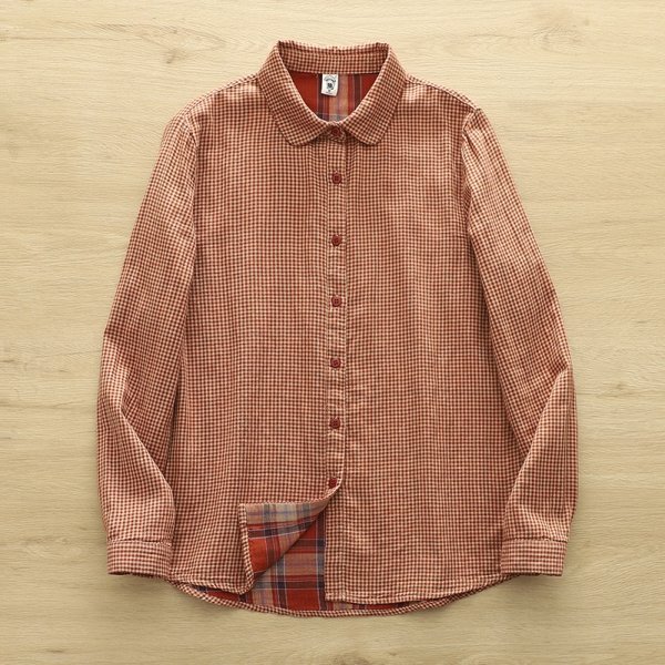 - c 2508 ダブルガーゼ フリーサイズ ワイシャツ チュニック トップス ナチュラル 綿100% 通気性肌触り抜群 サラサラ ゆったり チェック柄2