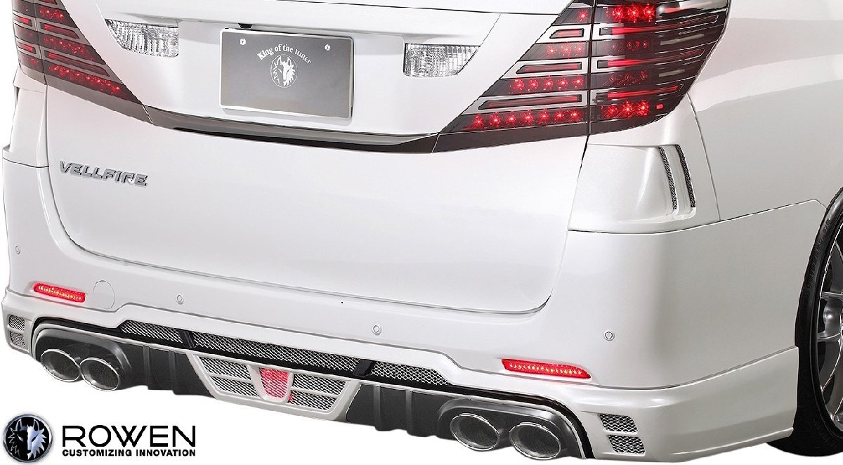 > 【M’s】 20系 ヴェルファイア Zグレード (前期) ROWEN リアハーフスポイラー 4本出しマフラー用 ロェン ロウェン エアロ パーツ 1T002P01