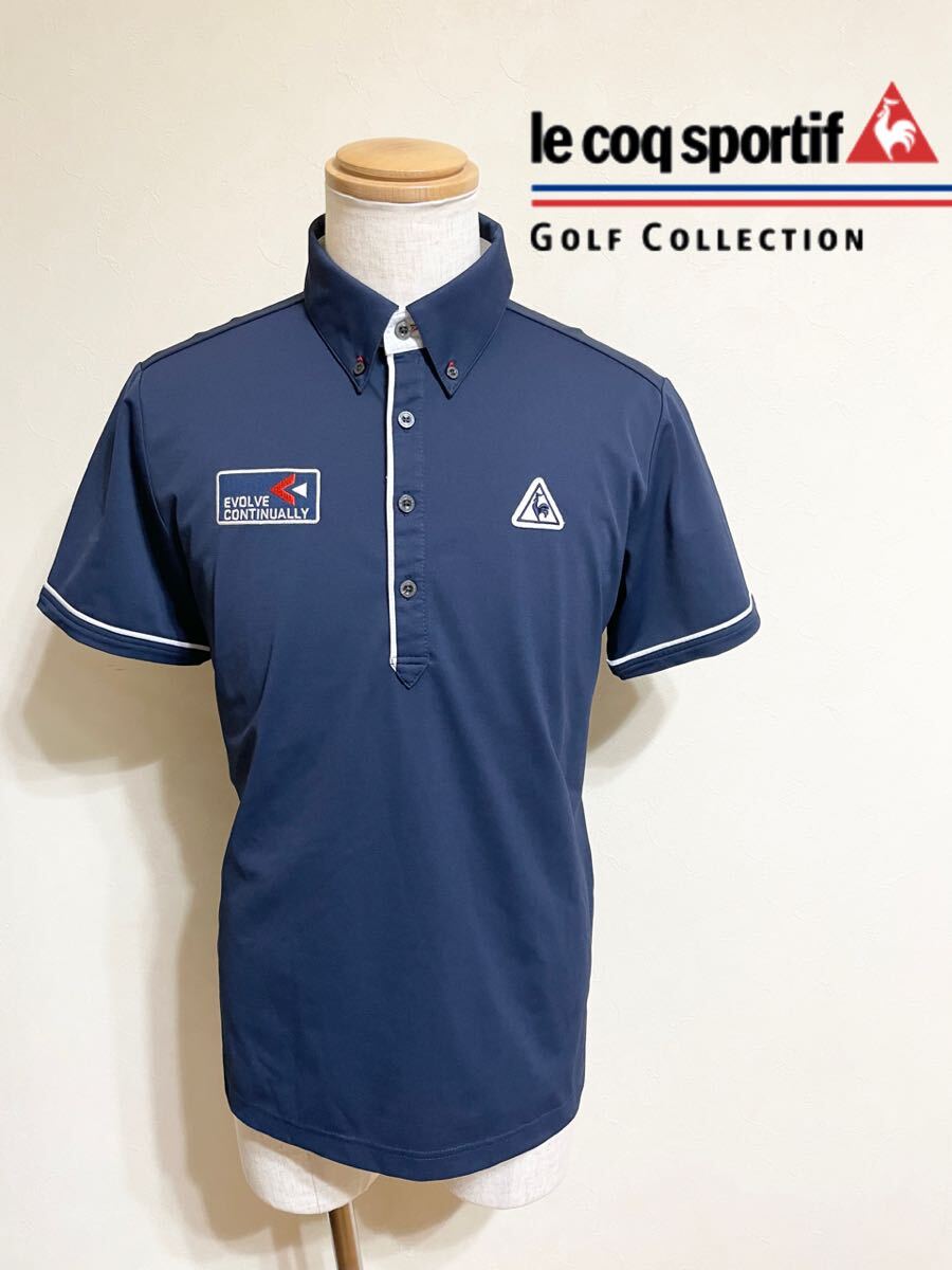 - 【良品】 le coq sportif golf ルコック ゴルフ ウェア ボタンダウン ドライ ポロシャツ ワッペン メンズサイズL 半袖 ネイビー デサント