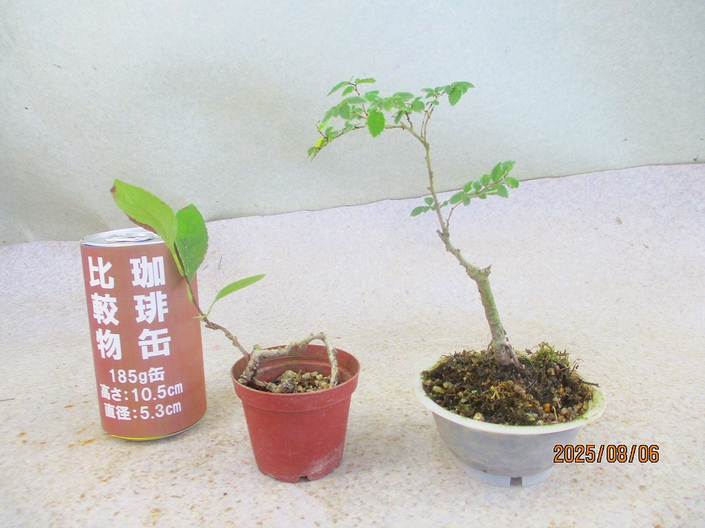- [緑の市場] ミニ盆栽 素材 2種組 梅擬/楡欅(8200)全高:15/20㎝【小型送料】*同梱包対応「まとめて取引」厳守*60サイズ送料明記