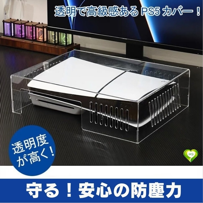- 【守る!安心の防塵力】PS5 Slimダストカバー 横置き 防塵 保護カバー 透明 アクリルケース 冷却 新型PS5のみの対応 着脱簡単 清潔