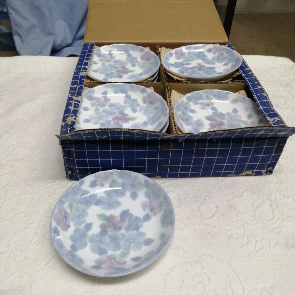 - 箱入未使用 計20枚 有田焼 小皿 華 花 保管品 居酒屋 小料理 割烹 (約直径13.6×高3cm)