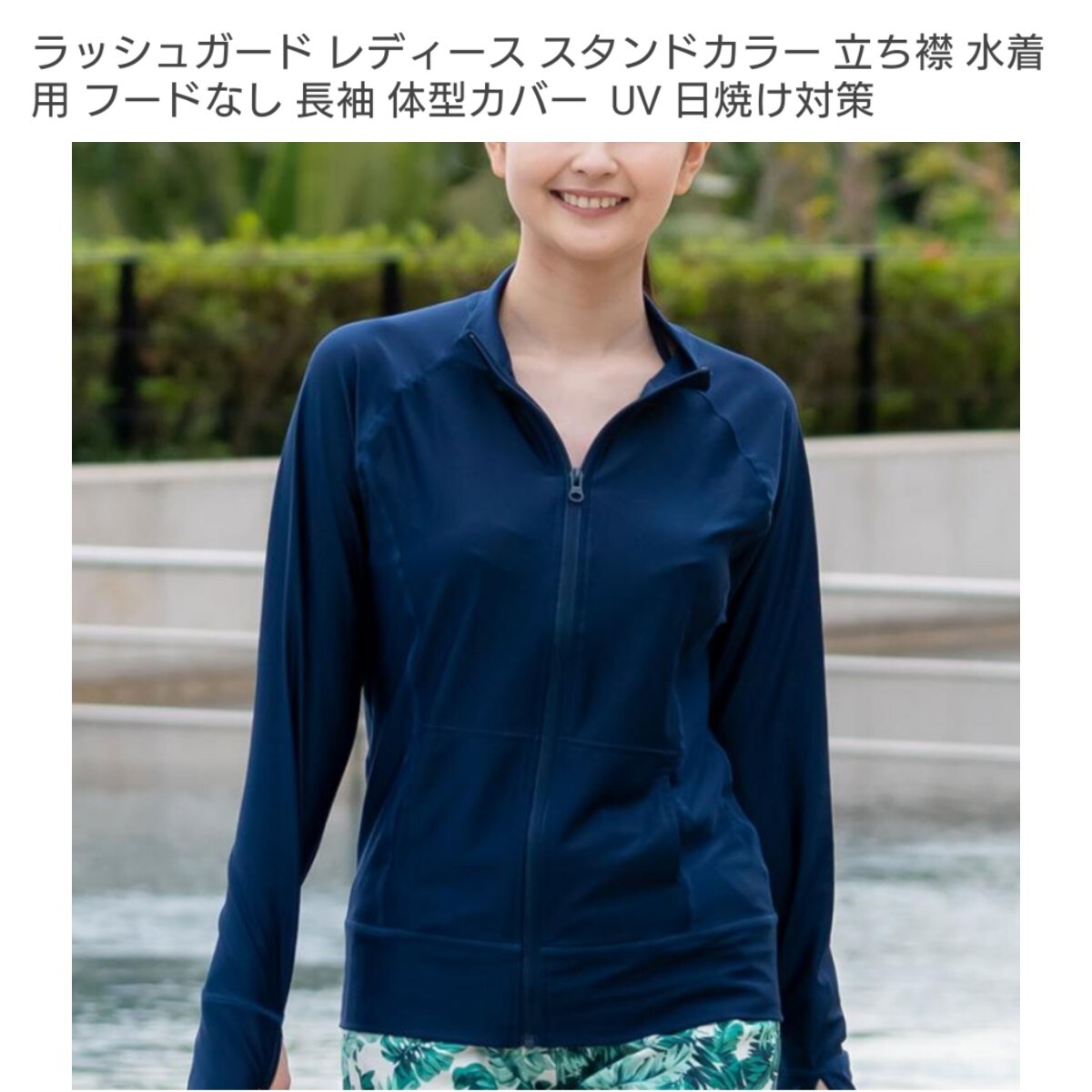 - ラッシュガード スタンドカラー フード無し 上着 水着 レディース L 長袖 デニム柄 濃紺 ネイビー uv 紫外線 カット 冷房対策 水陸両用