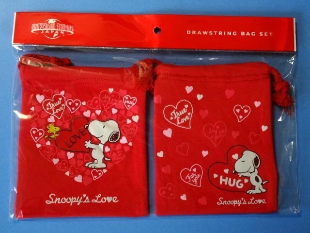 > 【廃盤】 USJ 限定★スヌーピー/巾着 キンチャク 2枚 セット/2015年 Snoopy's Love★送料310円