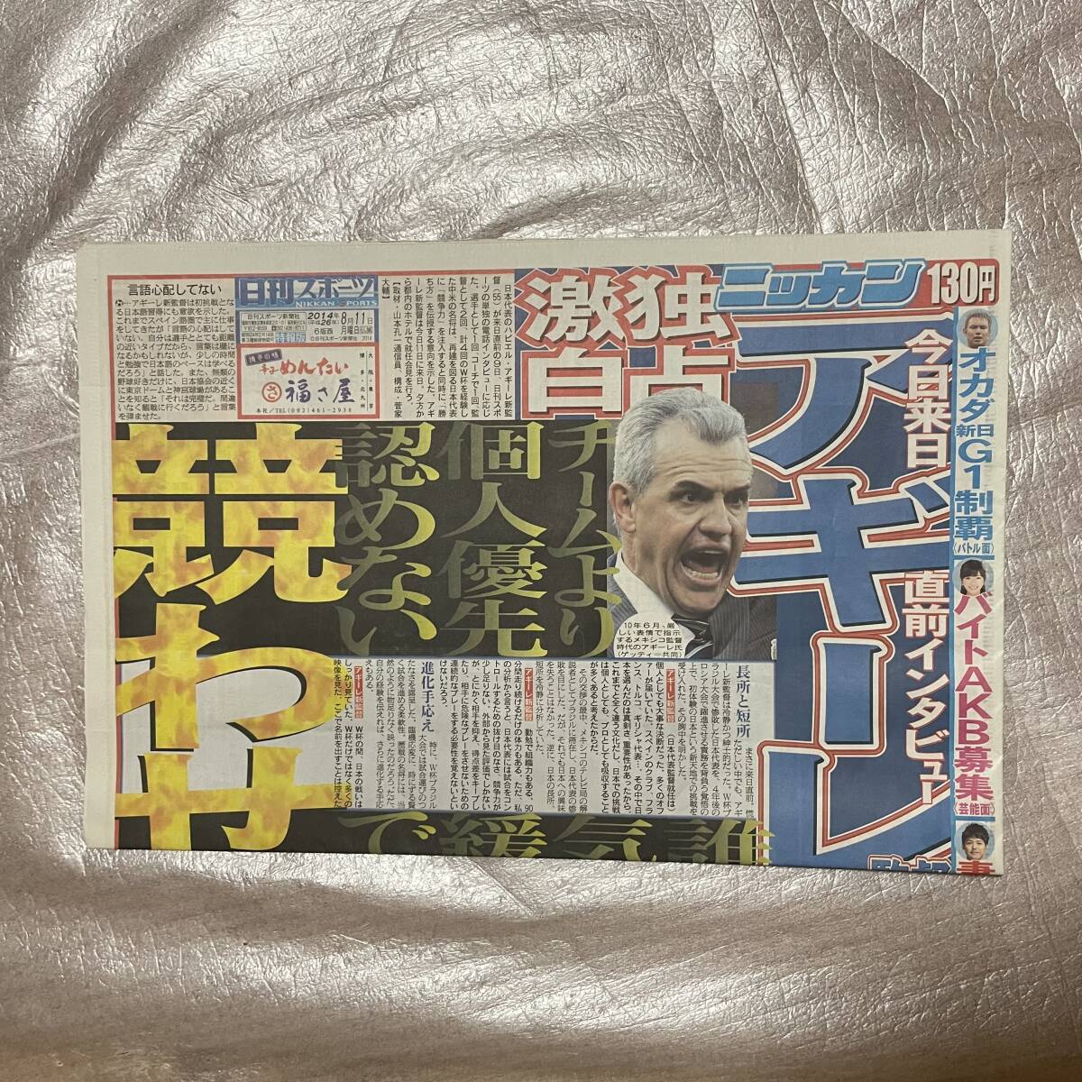 - 【新品未読】日刊スポーツ 2014年8月11日発刊 表紙:サッカー日本代表新監督アギーレ来日直前インタビュー バイトAKB48募集記事