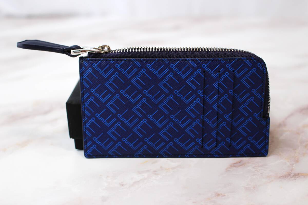 - 13.5×8㎝ 通年 スペシャル特価「ダンヒル」イタリア製・正規品・ミニ財布・ブルー系・レザー素材・ブランドロゴ♪サイズ13.5㎝×8㎝