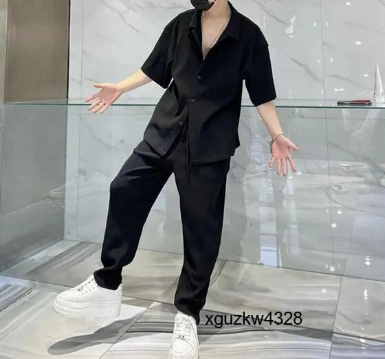 - メンズ シャツ セットアップ ジャージ 夏 上下セット スウェット 半袖シャツ ロングパンツ サルエルパンツ 部屋着 黒 白 M~3XLサイズ選択