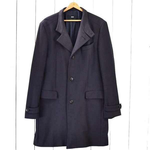 ・ヒューゴボスジャパン(株)。型番:-。秋冬対応。4つボタンシングル。スタンドカラー。センターベント。総裏地仕上げ。ネーム刺繍なし。この機会に是非!