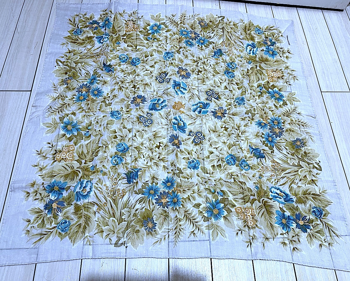 - ピエールカルダン pierre cardin 麻100% スカーフ フローラル 花柄 ヴィンテージ 昭和レトロ 日本製 リネン ハンカチ クロス