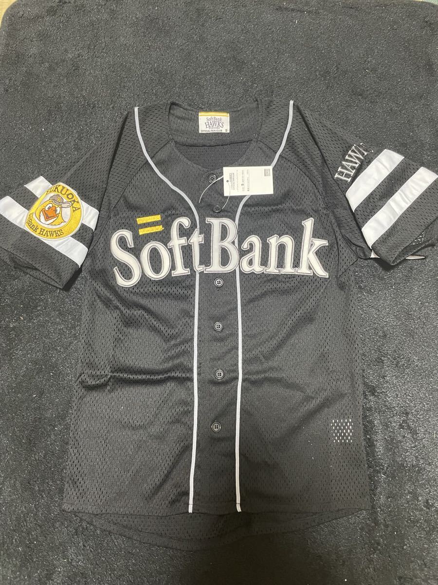 > 即決 送料無料 新品未使用タグ付き 福岡ソフトバンクホークス レプリカメッシュユニフォーム Sサイズ 刺繍 ビジター 黒