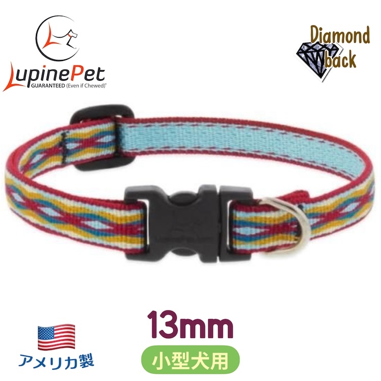 > ダイアモンドバック柄 小型犬向けワンタッチ首輪13mm幅XSサイズ 15-22cm LUPINE アメリカ製 軽量丈夫 ルパイン Diamondback