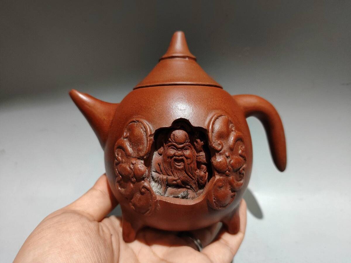 - 『館蔵珍品 紫砂壺 寿星壺 陳仲美款 紅泥 紫砂壺 茶具 茶道品』稀少珍蔵品 古賞物 貴重物品 収蔵品 中国古美術 時代物 古董品