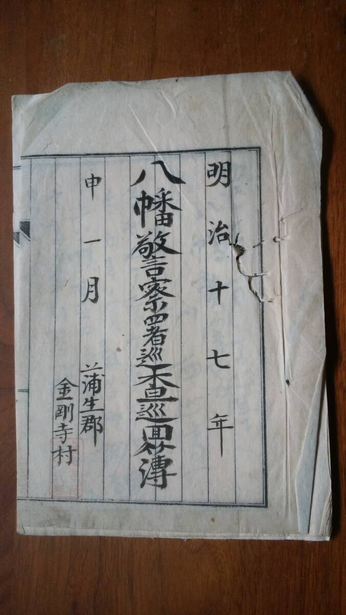 - 「明治17年 八幡警察署巡査巡回簿 蒲生郡金剛寺村」 虫食いあり、17ページ「可」です Ⅵ2函B