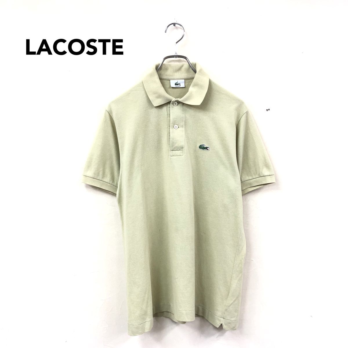 > 2H1516-T-N◆LACOSTE ラコステ ポロシャツ 刺繍ロゴ パッチ プルオーバー ハーフボタン◆size3 ライムグリーン メンズ トップス コットン