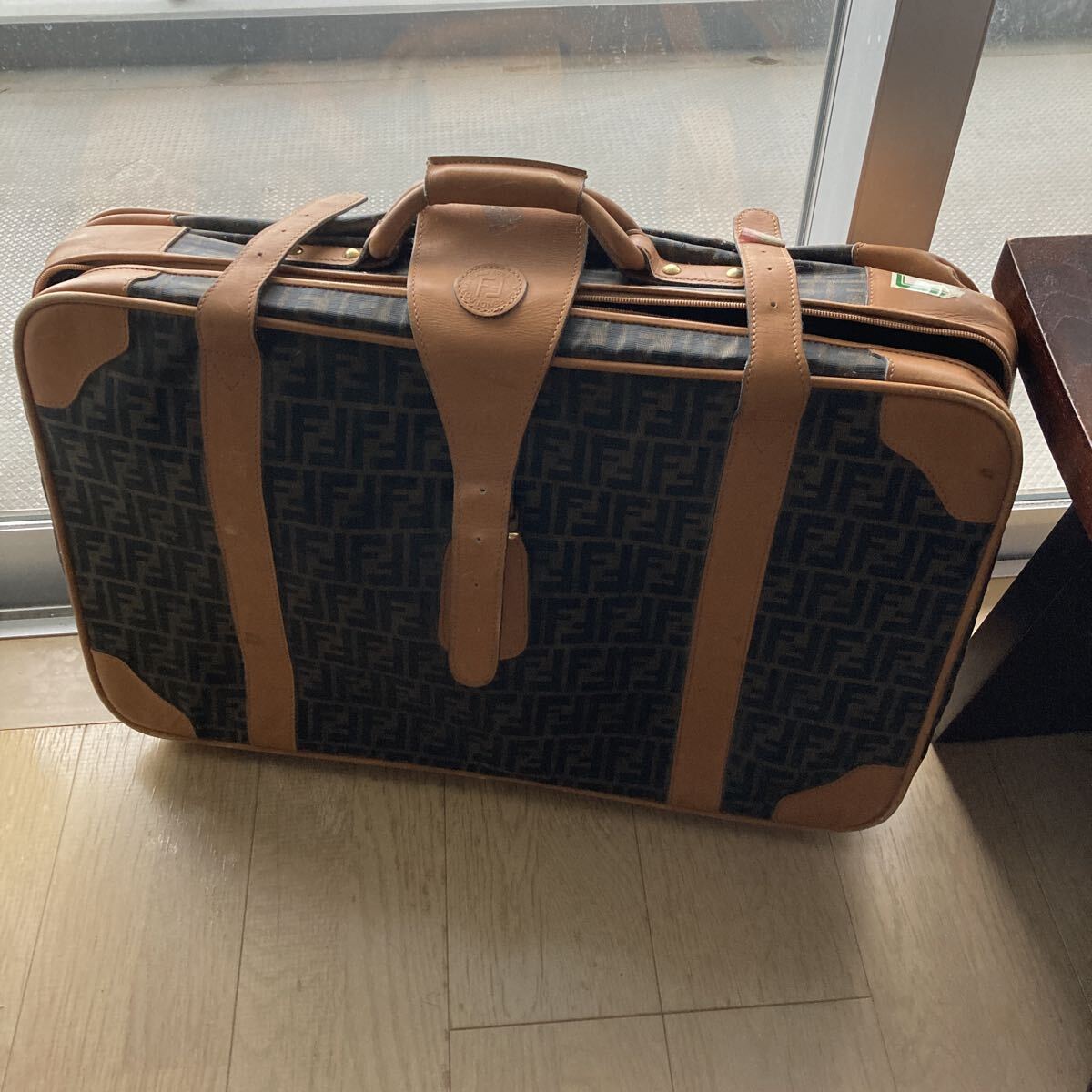 - レザー ボストンバッグ ブラウン系 大容量 ビジネスバッグ 旅行かばん 本革 フェンディ FF Fマーク