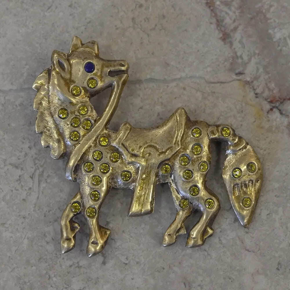 - 【仔馬の”身振り”が何とも可愛らしいブローチ】ピンバッジ馬ラインストーン金ゴールド一点ものフランスヴィンテージアクセサリー