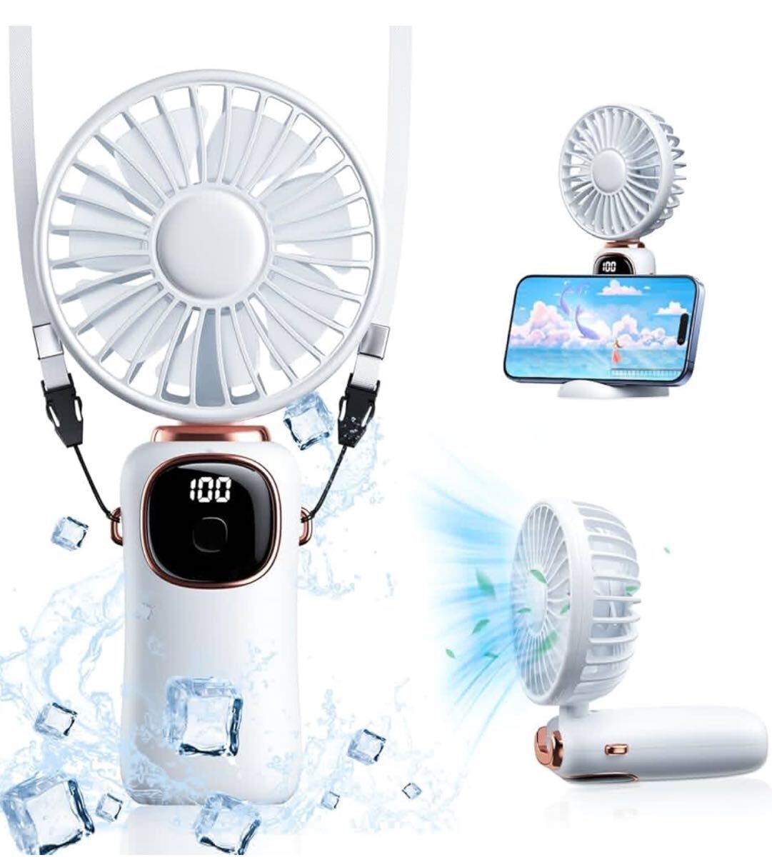 - ハンディファン3way使用・折り畳み 強力 人気 携帯扇風機 小型 手持ち/首掛け/卓上 USB充電式 ミニ扇風機 せんぷうき ストラップ付き
