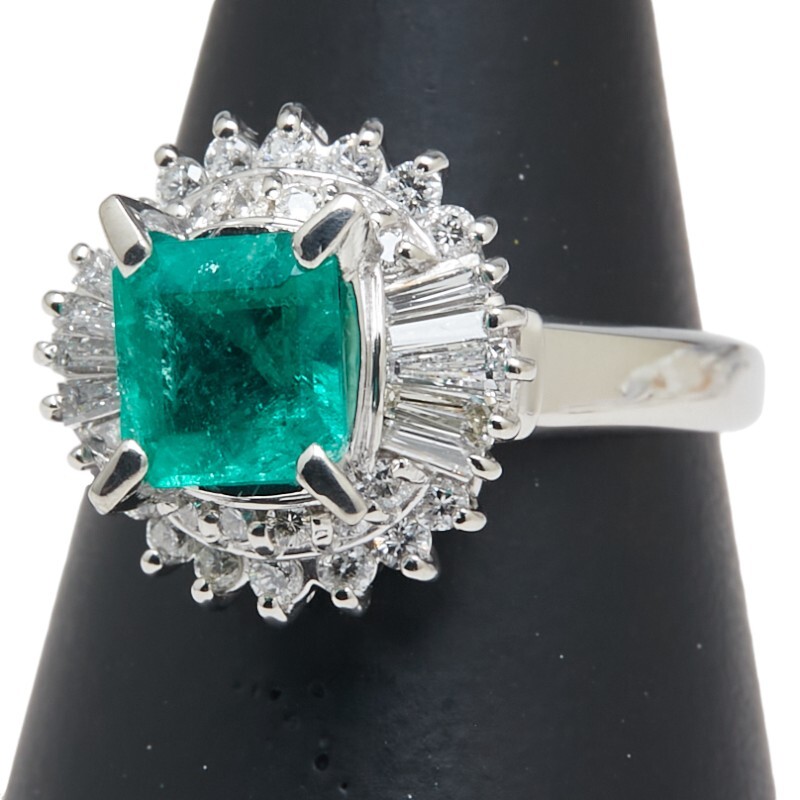- Pt900 プラチナ エメラルド1.07ct ダイヤ0.543ct リング 指輪 レディース 11号 中古
