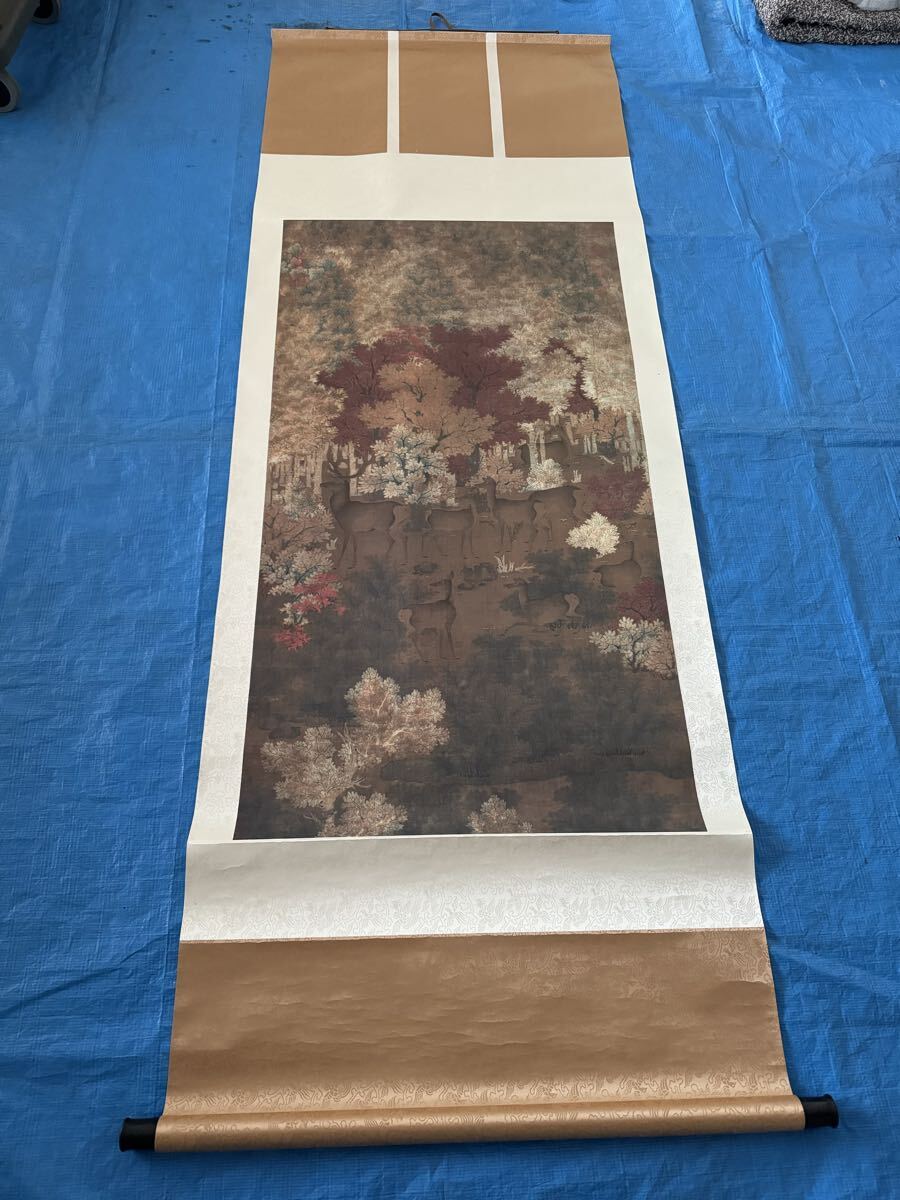 - 【希少】掛け軸 掛軸 五代人 丹楓鹿図 中国 木箱付き 旧家蔵出し 80サイズ