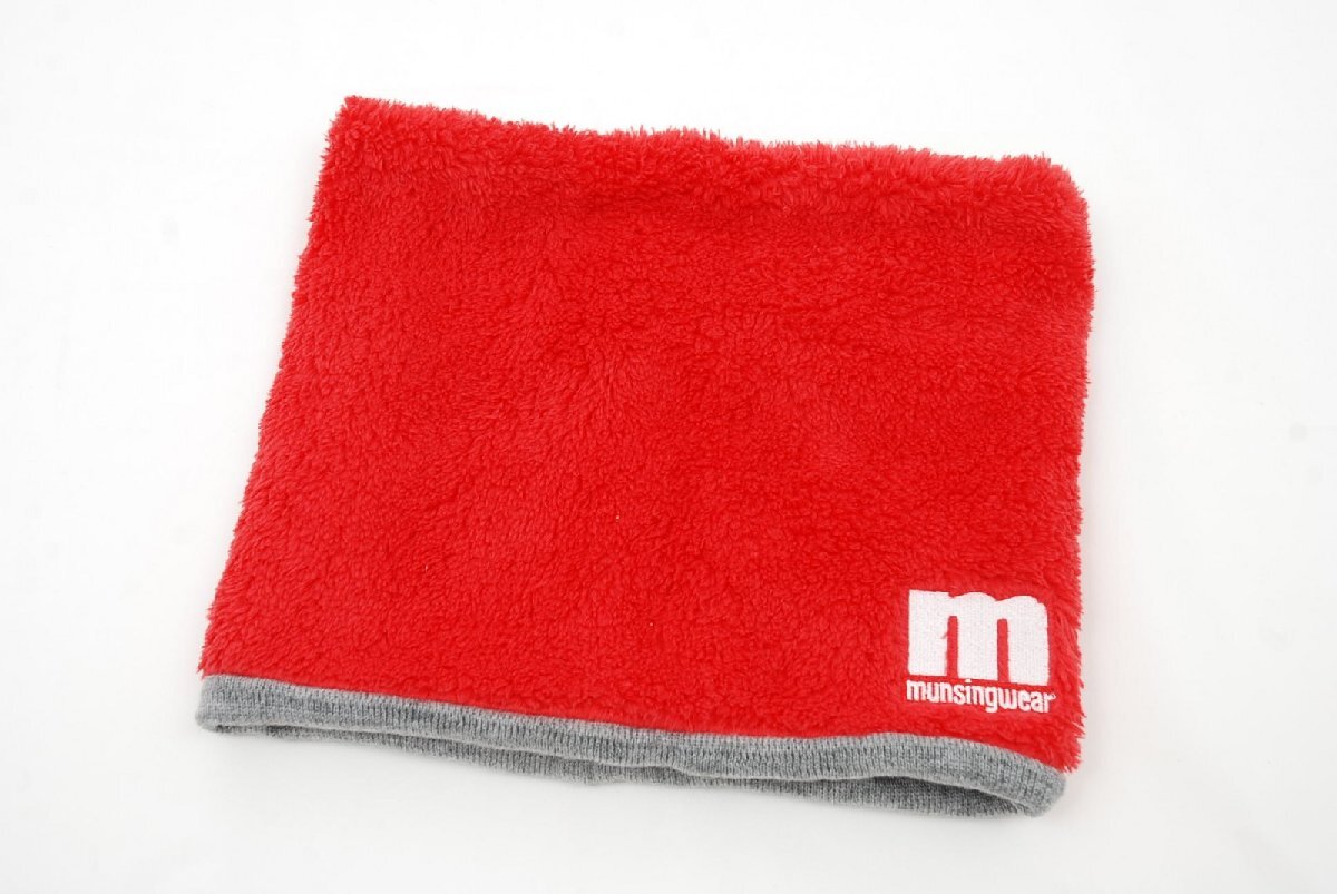 - coco 中古【値下げ】 マンシングウェア Munsing wear ネックウォーマー グレー×レッド 赤 ボア レターパックプラス発送可 85763
