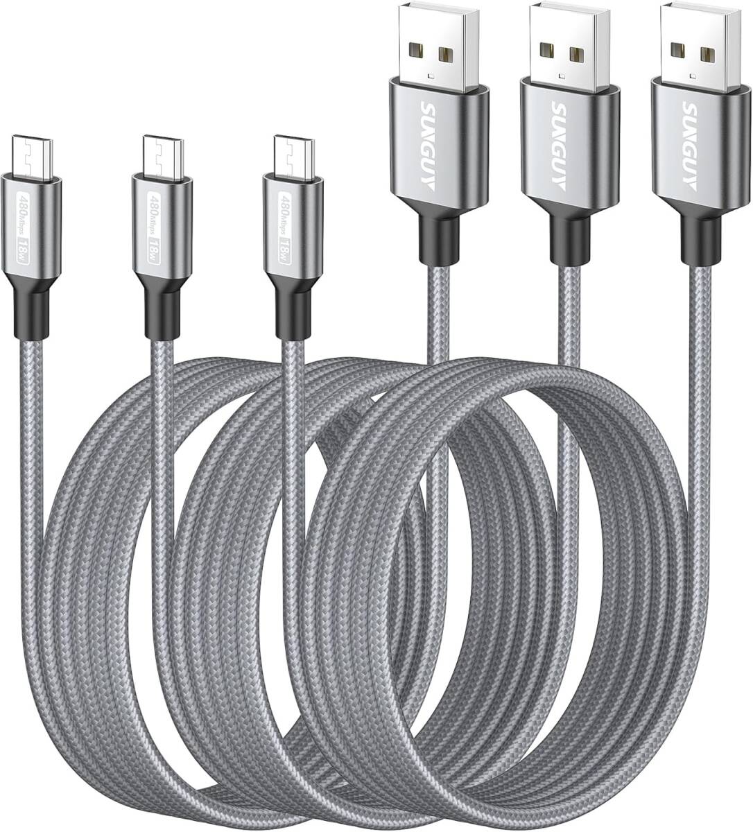 - SUNGUY Micro USBケーブル 2M 【3本組】 Micro-B QC3.0/2.0 2.4A急速充電 USB2.0データ転送 高耐久ナイロンマイクロ機種に対応 2m シルバー