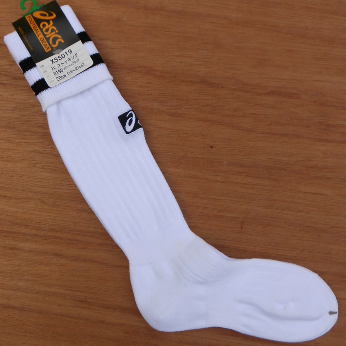 - 未使用 '90s asics FOOTBALL GEAR ストッキング ハイソックス 20cm アシックス 19~21cm ホワイト 白黒 ロゴ刺繍パッチ サッカー フットサル