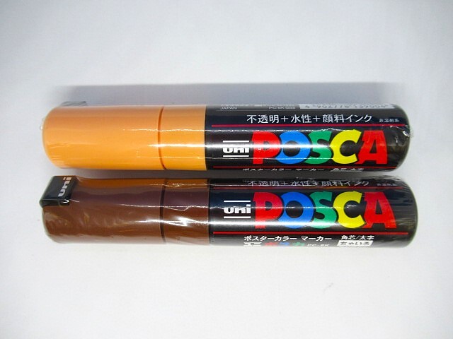 - 三菱鉛筆 水性ペン ポスカ 太字角芯 PC-8K.茶色1本・うすだいだい1本 合計2本★未開封品★