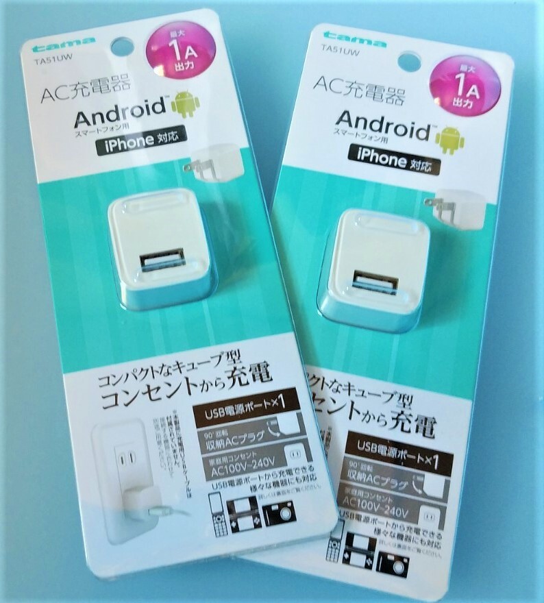 > ☆未使用・未開封品☆☆日本メーカー コンセントチャージャー 2個 AC 充電器 アダプター スマホ USB 変換 海外対応 コンセントから 充電