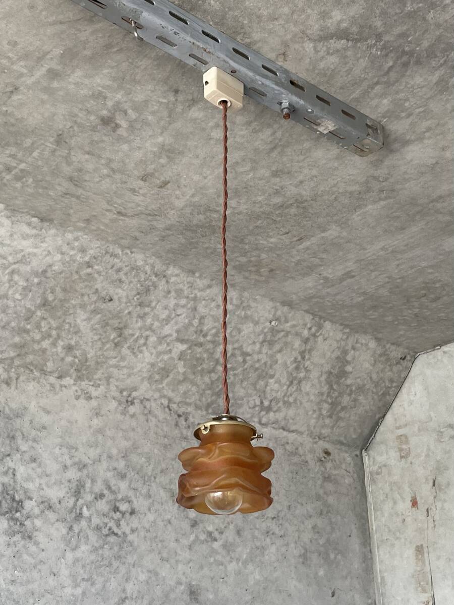 - 63. 40’s フランスアンティーク 古民家 ガラスシェードペンダントランプ フリル 吊り下げ シーリングライト 店舗 美容室