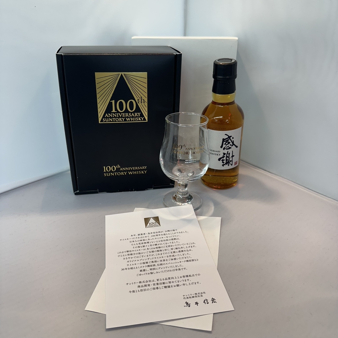 - 【未開栓】SUNTORY サントリー ウイスキー 感謝 100th ANNIVERSARY グラスセット 180ml