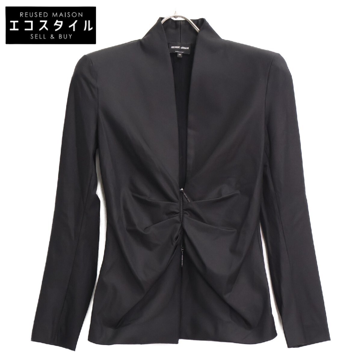 > 国内正規/ GIORGIO ARMANI ジョルジオアルマーニ 3RAG54 肩パッド付ノーカラー ジャケット 38 ブラック レディース