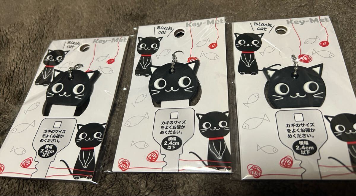 - 新品未使用★黒猫キーキャップ★3個セット★ブラックキャット★鍵用★カギ用★ネコ好き★カギカバー