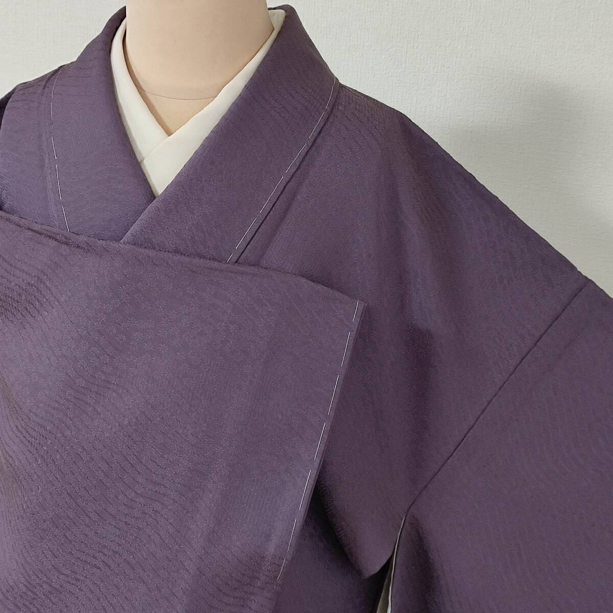 > 即決■着物の越田■裄67.5身丈164.5 正絹 色無地 袷 地紋 紋無し 上品 しつけ糸付き 紫系の色味 美品◇み12E02