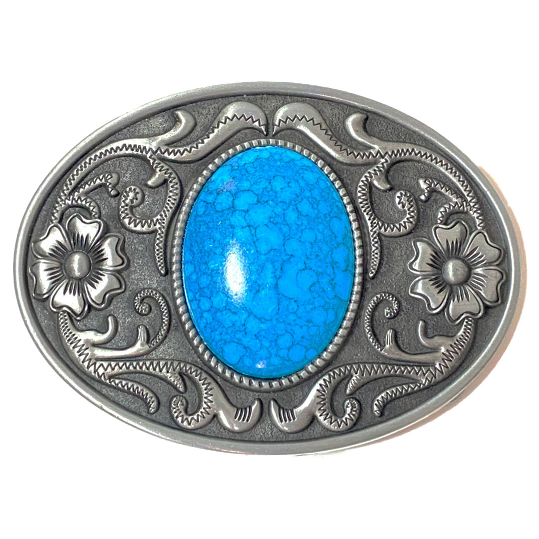 > ■新品/送料無料■ ベルトバックルのみ メンズ レディース 交換可能 金具 かっこいい かわいい ターコイズ 唐草 丸形 花柄 銀シルバー