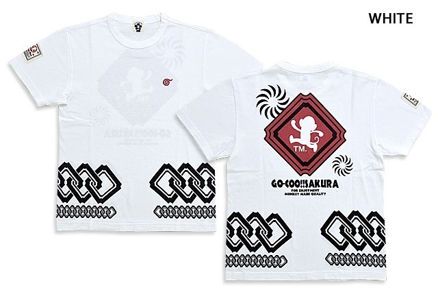 - 祭半纏風半袖Tシャツ◆悟空本舗 ホワイトXLサイズ GSC-8702 ゴクー 和柄 和風 お猿さん 日本製 国産