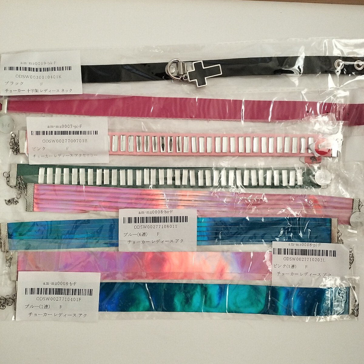 - 新品 処分品 8点セット チョーカー レザー 首輪 クロス 十字架 黒 ピンク 水色 レディース アクセサリー ②