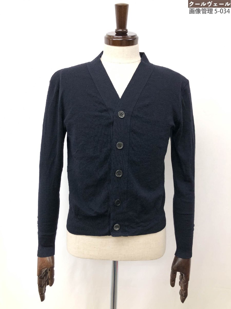 - 超美品【ルトロワ Letroyes】 ウール100% Vネック ニットカーディガン (メンズ) sizeS 暗めのネイビー フランス製 ◇33MN6036◇