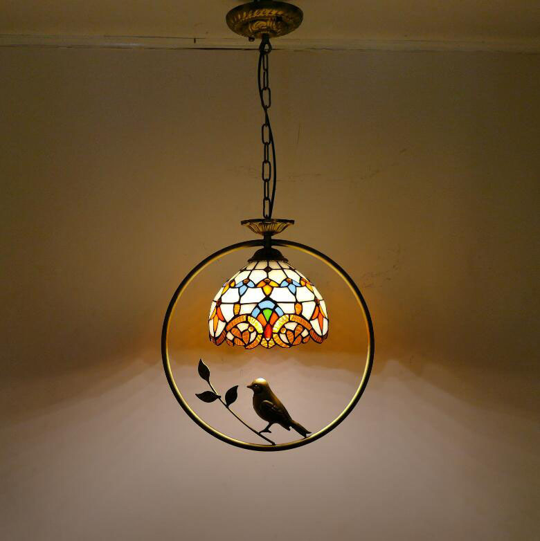 - 大人気★ 照明 家具 ステンドランプ ステンドグラス アンティーク インコ 芸術品★ヴィンテージ