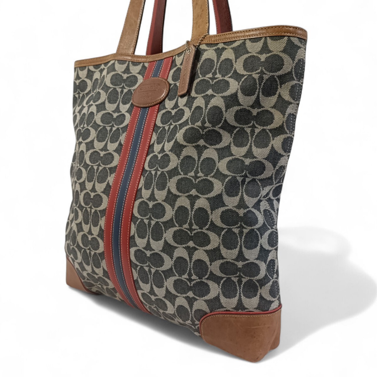 - 正規品 コーチ COACH トートバッグ シグネチャー キャンバス デニム ハンドバッグ 紺 ネイビー 男女兼用 大容量 マザーズバッグ A4収納