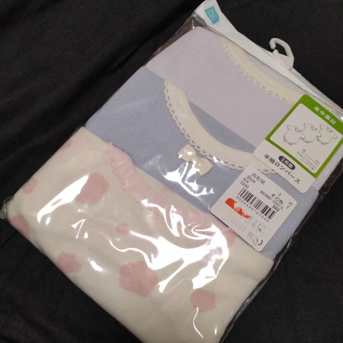 - 半袖ロンパース3枚組☆新品未開封☆年中素材90サイズ