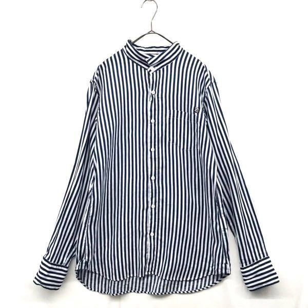 - KZ8057★PEARLY GATES : マリンストライプ リネンL/Sシャツ★5★青×白 長袖 日本製 パーリーゲイツ